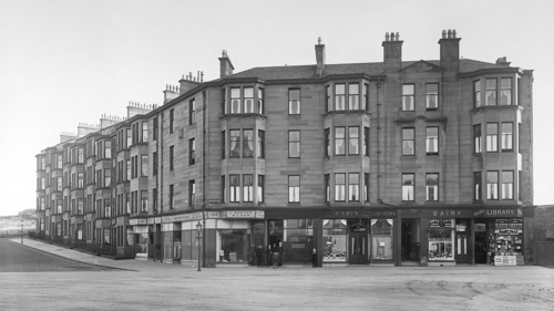 Many tenement blocks weren’t fully residential as some were built with shops on the ground floor including these tenements on Newlands Road (pictured in around 1910). This design feature hails back to an earlier version of tenement living, before 1800, when the ground floor boasted an open arcade at street level. Protected from the inclement Glasgow weather, pedestrians could window-shop in peace.