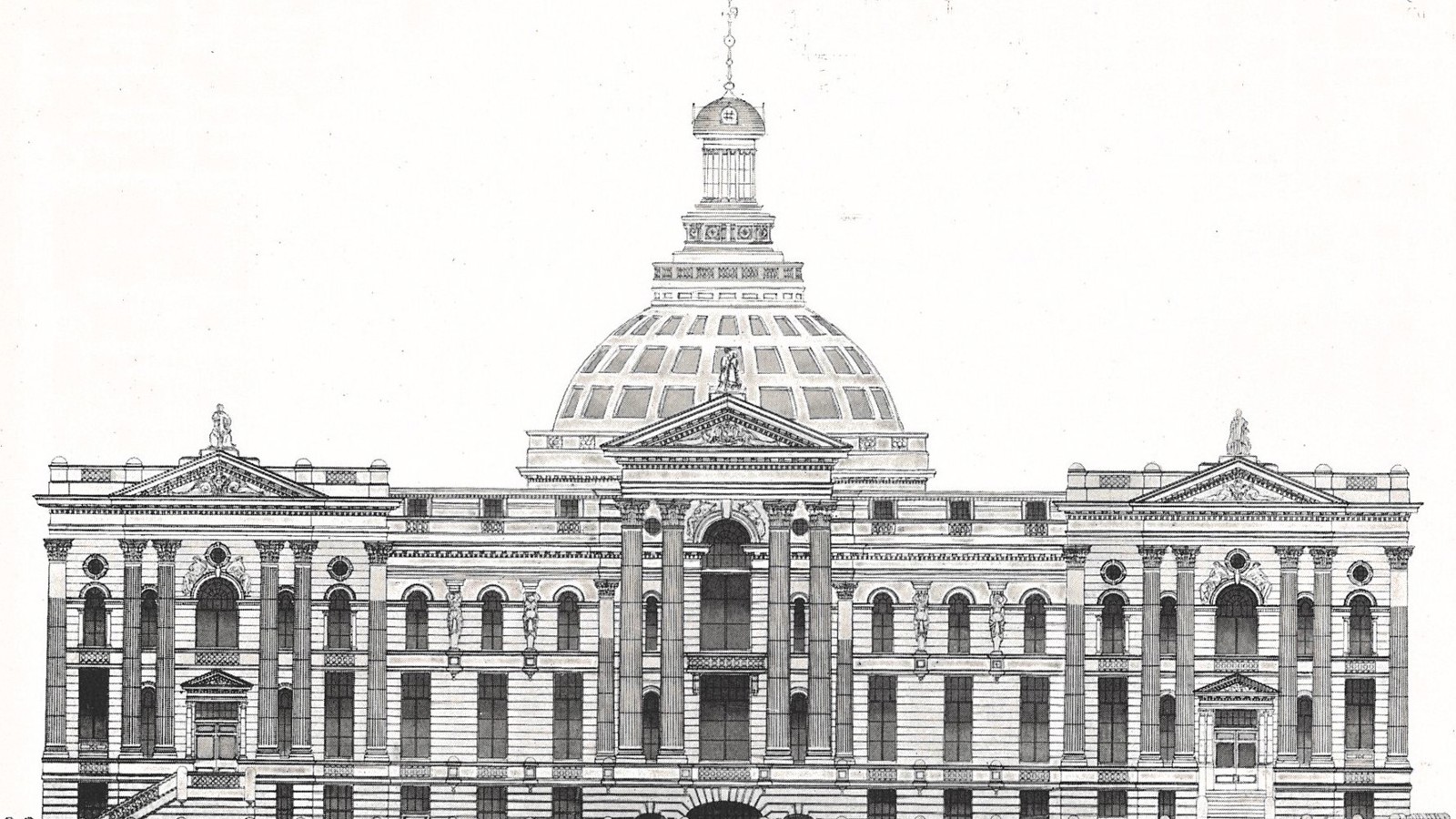 Charing Cross is the Mitchell Library’s third home. The first was opened in November 1877, occupying two floors of a building in Ingram Street. This building still stands. In more recent times it has been occupied by the Italian Kitchen restaurant and Ingram Wynd pub.
