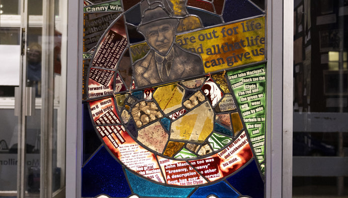 Pollokshaws Library also features a stained-glass window by artist Keira McLean celebrating John Maclean 100 years since his death. Celebrating his life and Legacy. You can now view the stained-glass window at Pollokshaws Library during normal opening hours.