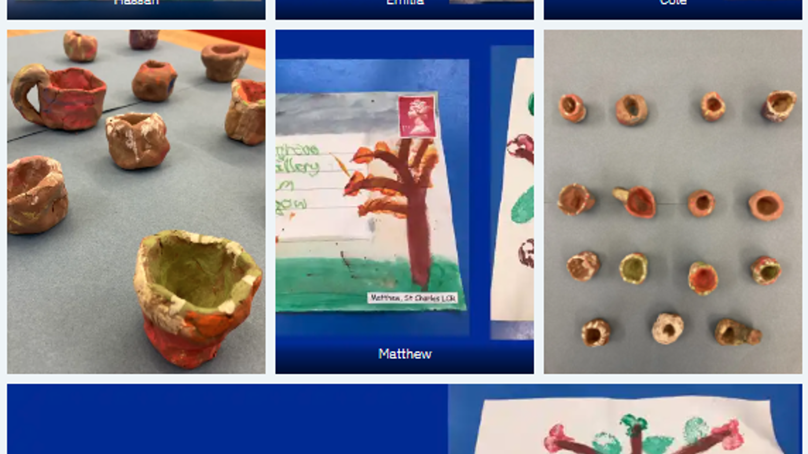 Primary One Pinch pots and blown tree collages